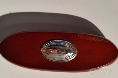penna a sfera (o roller) in fiera e elegante rifinitura colore argento) contenuta in un elegante astuccio in legno massello (in ciliegio