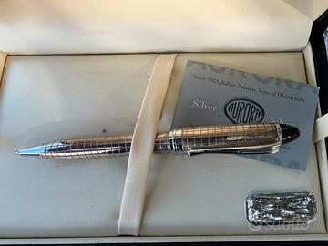 Penna Aurora in argento "IPSILON QUADRA" con astuccio e certificato originali come da foto.