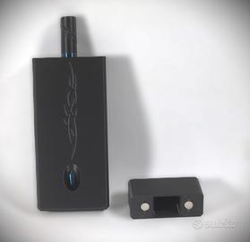La custodia abbinata, e con chiusura magnetica, è rettangolare (14 × 2 × 6 cm) e progettata per fungere anche da portapenne da scrivania. La punta della penna si innesta in un foro obliquo per circa 2 cm, rendendo il gesto di riporla o impugnarla fluido e naturale.