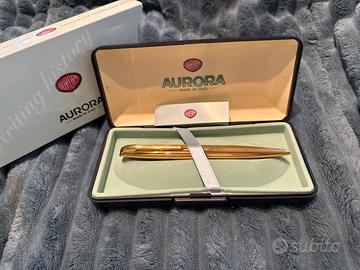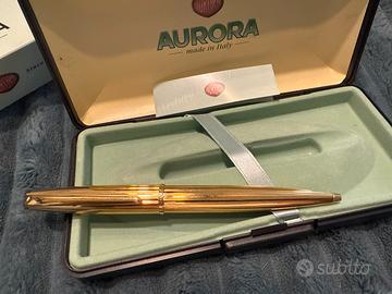 Aurora International.Penna a sfera Aurora 98 vintage laminata oro lucido satinato con lavorazione particolare a millerighe in perfette condizioni. Refil nero.