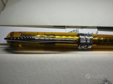 Penna a Sfera Avatar UR Demo Metal amber mai utilizzata con il set da scrittura immacolato e confezione compreso sacchetto.