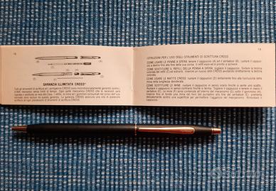 Vendo penna a sfera vintage CROSS Classic Century nera completa di astuccio, libretto di garanzia-istruzioni e refil di ricambio, entrambi funzionanti, (posso fornire video di scrittura) ad euro 35.