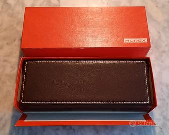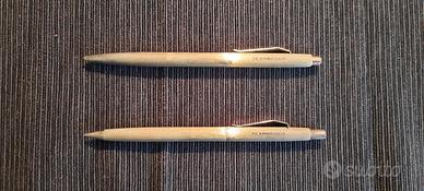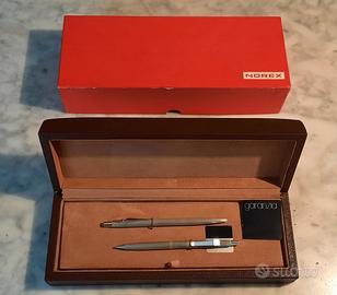Penna a sfera e Portamine Norex in argento massiccio, cofanetto in similpelle e raso, confezione originale e garanzia, marchiatura De Ambrosis, anni '70.