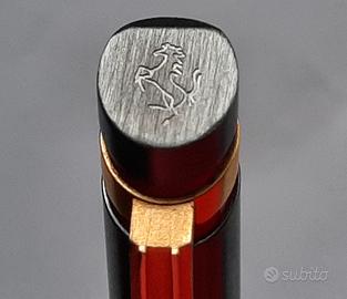 Vendo penna a sfera " Ferrari Formula " degli anni 80 colore canna di fucile e finiture rosso-oro, perfetta e perfettamente funzionante (con nuovo refil Parker compatibile), con certificato di garanzia, ma senza la scatola originale ad euro 130.