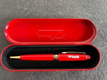 Penna a sfera ufficiale Scuderia Ferrari, modello celebrativo della linea "Maranello". Un pezzo immancabile per ogni tifoso della Rossa o per collezionisti di oggettistica legata al mondo del motorsport. Colore Classico Rosso Corsa Ferrari con finiture ed eleganti dettagli dorati. Grafica: Presenta la scritta bianca "I ❤️ Maranello" sul fusto. Condizioni: Nuova, mai usata. L'inchiostro è perfettamente funzionante (colore nero). Inclusa la sua custodia rigida originale in metallo rosso, sagomata internamente per proteggere la penna. Ideale come regalo o come accessorio da scrivania per veri appassionati della Ferrari. Spedizione veloce e accurata.