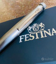 Penna a sfera Festina completamente cromata in tonalità di grigio, con una texture liscia e squisiti dettagli ispirati al design unico della collezione Chrono Bike orologi. Più di un semplice strumento di scrittura, questa penna ha un design originale che combina l'universo sportivo con il lusso. Rappresenta un dettaglio perfetto da regalare.