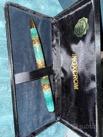 La penna presenta un design distintivo, con un corpo che sembra imitare la texture di una pietra naturale e dettagli dorati, inclusa la dicitura "GOLD electroplated 6K".