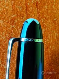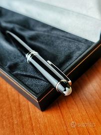 Penna a sfera Montblanc Meisterstück Mozart, finitura nera lucida e dettagli platino, completa di scatola originale, manuale e garanzia.
