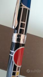 "Playhouse" Product: Roller Ball Design: Frank Lloyd Wright Released: 1997 Original Price: $45.00 Edition Finished: October 2022 Current Market Value: $1250.00 "Playhouse" Standard Roller Ball Pen, a design inspired by Frank Lloyd Wright, comes from ACME Studio's Standard Roller Ball Pens. The design has silver line work with red, yellow, and blue accents on a black background that are reminiscent of the windows in the child's playhouse designed by Wright for Avery Coonley in the suburbs of Chicago - representing balloons and confetti in a Fourth of July Parade. The pen comes with one black roller ball refill. Artist's signature is engraved on the cap band and "ACME" is on the clip. The pen is presented in a metal Frank Lloyd Wright tin with a black sleeve and ACME literature. © 1997 The Frank Lloyd Wright Foundation. All rights reserved. Nuova senza scatola. Il prezzo è la valutazione corrente del sito ufficiale ACME destinato a rivalutarsi secondo le statistiche. Frank Lloyd Wright