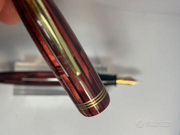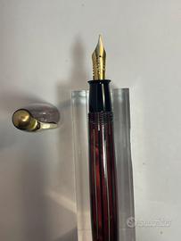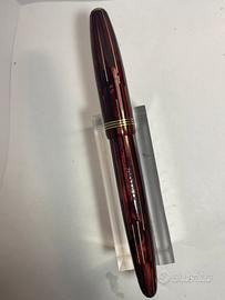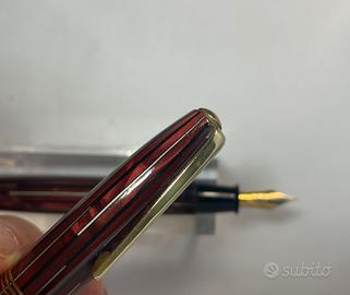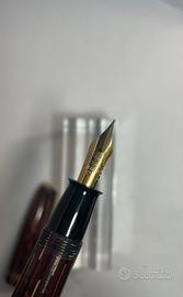 Penna stilo Astura Nova in celluloide bordeaux rigata grey- black , anni 30. Finiture gold, pennino originale lam. Oro, sistema a pulsante di coda. Lunghezza cm. 12,8
