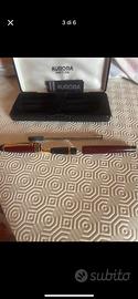 Bellissima penna Aurora a sfera in resina di colore bordeaux con anello in lacca e finiture dorate .. insieme alla penna c’ e’ ancora il refill originale sigillato e fuori dalla penna . La scatola e’ in plastica e velluto NB la scatola in plastica ha perso la sua cerniera che fissa le 2 parti dell’ astuccio ma e’ la sua custodia originale . Garanzia all’ interno . Preferibile consegna a mano Roma quartiere Talenti
