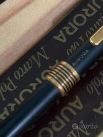 Penna a sfera Aurora Marco Polo, nera ed oro, vintage anni '80 con scatola originale, come nuova Per ritiro a mano: Roma - zona Piazza Bologna