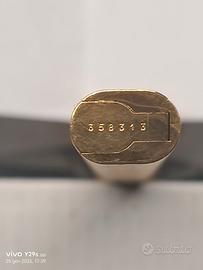 Splendida penna a sfera Les Must de Cartier, corpo finemente cesellato e placcato oro, clip sollevabile attraverso il bottone sul top, tappo con 3 anelli incrociati dei 3 colori dell'oro, completa di cofanetto originale, risalente agli anni '80. Ottime condizioni, quasi paragonabile al nuovo, mai usata, senza ammaccature, refill esausto, con certificato di garanzia e cofanetto originale ma un pò rovianto sulla parte superiore. Penna a sfera di alta qualità, da collezione. Lunghezza penna 134 mm, peso 25 gr. Made in France. Una penna eccezionale, oggetto per amatori e collezionisti ... da non perdere!!
