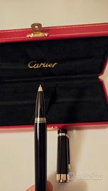 vendo penna Cartier Santos-Dumont in lacca nera con finiture argentate, penna a sfera con scatola originale Cartier. nuova, mai utilizzata