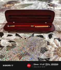 Penna con astuccio in legno (placca in argento)