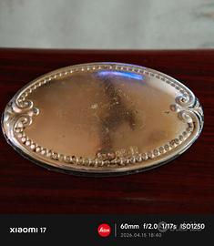 Elegante set da scrittura vintage (primi anni 2000) composto da penna 🖊️ a sfera e scatola realizzate in legno massiccio con venature a vista (finitura mogano/palissandro). Dettaglio di pregio: L'astuccio presenta una placca ovale in Argento 925. Condizioni: ottime, il legno è ben conservato,la placchetta presenta una naturale patina del tempo che ne garantisce l'autenticità (può essere lucidata per farla tornare brillante). Funzionamento: La penna 🖋️ monta un refill standard (✅ Testata e funzionante: la penna scrive ✍🏻 fluidamente senza macchie). Perfetto come idea regalo retrò o come complemento d'arredo per una scrivania classica. 📦 L'imballaggio è fatto in modo da proteggere al 100% l'articolo. 🚚 Spedizione veloce entro 48 ore massimo dall'acquisto. ✅ 100% di affidabilità e serietà. 💬 Per qualsiasi info non esitate a scrivermi.