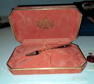 Penna da collezione dei Musei Vaticani, presentata nella sua elegante scatola. - Design esclusivo con simboli papali. - Finiture dorate e dettagli curati. - Interno della scatola in velluto rosso.