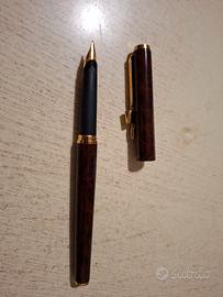 Stilografica Parker fine anni 80 rifinita in lacca marrone mormorizzato con dettagli placcato oro in scatola originale