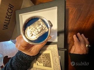 Vallecchi celebra l'Ars Maior dei Medici e degli Speziali una delle corporazioni più antiche e prestigiose con una nuova stilografica elegante e raffinata, gioiello esclusivo dell'arte orafa fiorentina. L'attività di questa Arte consisteva nell'esercizio della medicina e della chirurgia, secondo le cognizioni del tempo. Gli antichi dottori preparavano personalmente le medicine per i loro pazienti, mentre gli speziali si procuravano erbe, droghe e spezie necessarie alla preparazione dei medicinali e si dedicavano al commercio di profumi, essenze e colori. Tra gli illustri appartenenti a questa Arte, Dante e Giotto, mentre la protettrice era la Madonna della Rosa. Una celebre statua scolpita da Simone Ferrucci ancora oggi è collocata in una nicchia sulla facciata della Chiesa di Orsanmichele a Firenze. Vallecchi dopo aver dedicato un volume di grande valore storico-letterario ha deciso di rendere un ulteriore omaggio alla figura del Medico. La stilografica, nelle due declinazioni, in oro e argento palladiato è un prodotto unico per le sue caratteristiche di produzione e per un design che coniuga elementi della tradizione con la funzionalità del prodotto. Il fusto è in metallo prezioso lavorato "a buccia d'arancia" e reca un motivo di incisioni a losanga che riprendono il motivo della medaglietta in smalto blu. Il codino, il cappuccio e la camicia sono in resina acrilica nera.