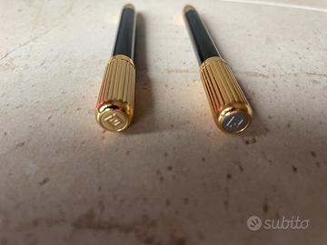 Set Penna e Matita portamine tascabili, marca Fendi, oggetto vintage anni '80/'90 per appassionati e collezionisti. Non ho più la custodia in pelle. La penna non è funzionante ma credo di possa cambiare la cartuccia dell'inchiostro. Il meccanismo della matita sembra integro. Presentano qualche segno di usura dovuto al tempo. Vendo con la formula "visto e piaciuto". Non ho alcuna certificazione. Sia la penna che la matita riportano impressa nella parte dorata la sigla "Fendi". Non ho alcuna certificazione.