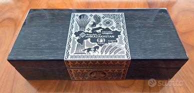 PENNA EMPIRE. Modello roller, serie Astana Republic of Kazakhstan. Design ispirato al Tengrianesimo, realizzato in stile turco zoomorfo e cosmogonico e sono raffigurati petroglifi, ognuno dei quali ha un significato sacro con le immagini di spirali e del sole che rappresentano il moto eterno. In metallo argentato con incisioni ad alta precisione. Colore argento, nuova nella plastica, con confezione e scatola in legno laccato. Euro 40.