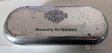 Penna a sfera Harley Davidson by Waterman, mai usata e perfettamente funzionante, nella sua custodia originale, perfetta internamente, con qualche segno del tempo sul coperchio.