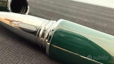 JAGUAR DEDICA ALLA SCRITTURA QUESTO MODELLO IN METALLO LACCATO CON RIFINITURE IN PALLADIO CON IL LOGO AZIENDALE LACCATO DI BIANCO SUL CAPPUCCIO. LA PENNA FUNZIONA CON RICAMBI ROLLER STANDARD. MAI USATA.