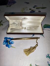 Penna LALEx vintage dorata con fermaglio particolare ad anello (tipo attacco a tenda), completa di custodia originale e garanzia.