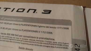 Libretto originale delle prenotazioni PlayStation 3 60gb Ps3 del lontano 17 novembre 2006, dimensioni circa 21cmx10cm, prezzo euro 50, gadget introvabile.
