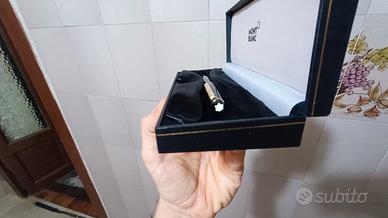 Penna a sfera Montblanc modello Meisterstück, nell'iconico colore nero e oro, colore inchiostro blu. Penna mai utilizzata, nella sua confezione originale con documenti originali (è leggermente sgualcita la confezione esterna di cartone, in corrispondenza degli angoli).