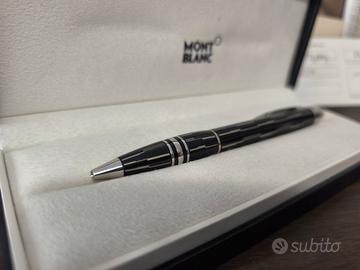 Collezione: Star Walker Black Mystery Materiale: Resina Colore: Nero Le finiture sono interamente placcate in platino, offrendo una lucentezza argentea che contrasta perfettamente con il corpo scuro della penna. L'elemento distintivo della collezione StarWalker è la cupola trasparente sulla sommità del cappuccio, dove l'emblema della stella bianca Montblanc sembra fluttuare sospeso, richiamando il fascino dell'esplorazione spaziale. La penna adotta un pratico meccanismo a rotazione (twist) per l'estrazione della punta. L'autenticità è garantita dalle meticolose incisioni sulla clip e sul relativo anello, dove sono riportati chiaramente il logo "MONTBLANC", la dicitura "GERMANY" e il numero di serie individuale nonché dal libretto allegato con relativo timbro della boutique d'acquisto. La penna si trova in ottime condizioni, con le superfici laccate e le parti metalliche che conservano una brillantezza impeccabile, priva di graffi significativi o segni di usura marcati. La cupola in resina trasparente è limpida e integra, a differenza di altri esemplari che spesso presentano micro-fessurazioni. Le condizioni sono pari al nuovo.