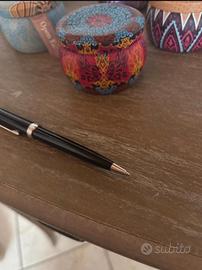 La lussuosa penna a sfera Pix nera di Montblanc è in pregiata resina lucida e presenta dettagli finitura platino. La parte superiore del cappuccio è coronata dall’iconico emblema Montblanc bianco. Vendo senza scatola.