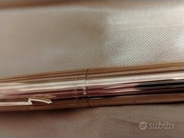 Parker 61, un classico modello di penna stilografica vintage introdotto per la prima volta negli anni '50. Questo specifico esemplare presenta una finituraplaccata in orocon un raffinato motivo a righe verticali su tutto il corpo e il cappuccio.Mai usata.