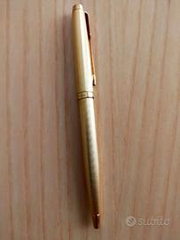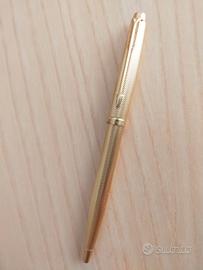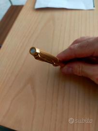 Penna a sfera PARKER, finitura grano oro 14k, meccanismo a scatto, forma affusolata, clip con tipica freccia che contraddistingue le penne PARKER. Dimensioni 13x0,6. Faceva parte del set contenente anche la penna versione stilo che è stata venduta e quindi non c'è la scatola originale. Perfette condizioni. Valore commerciale 130 euro.