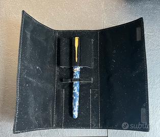 Penna Parker Sonnet Laqué Indigo tipologia roller, finiture in oro, mai usata e in condizioni perfette. Dotata di scatola originale e portapenne in velluto originale.