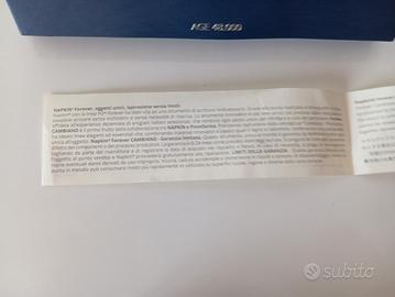 Penna perpetua Napkin Forever della collezione Pininfarina Cambiano. È composta da un corpo in alluminio argentato con inserti in Noce massello. Puntale in Ethergraf. Certificato di garanzia e scatola come da foto