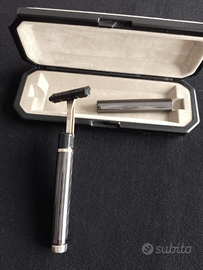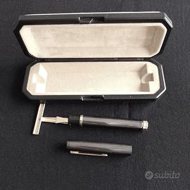 Penna-Rasoio con testina girevole e sistema di bloccaggio adatta per lamette con cartucce tipo Gillette GII G2 Trac II PII penna da viaggio originale ed elegante per amatori e collezionisti ideale come regalo particolare oggetto vintage anni '80 con marcatura Pat. Pend. astuccio in plastica e alcantara con effetto vellutato peso penna 32 grammi astuccio 84 grammi ottime condizioni leggeri segni del tempo piccoli segni su alcantara esterno foglietto d'istruzioni in italiano e multilingue Eurafrica s.r.l. Milano Brevetti Industriali