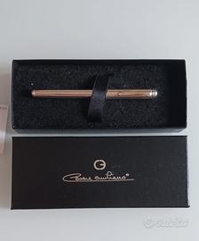 Penna Roller in argento 925, firmata Cesare Emiliano. Lunghezza 13,5 cm, diametro 10 mm, peso 38 gr. La penna monta una ricarica Universale Schmidt Capless System. Nuova, con astuccio firmato e certificato di garanzia. Mai utilizzata.