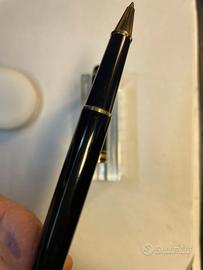 Penna Roller MontBlanc 163, originale, in resina Black e finiture gold. Usato poco e in ottime condizioni. Nuovo roller originale inserito. Cm. 13,5