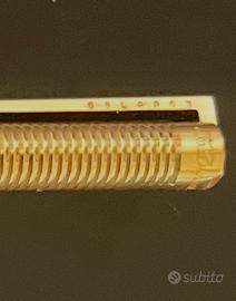 Penna a sfera S.T. Dupont originale, collezione Classique, finitura placcata oro con lavorazione a righe. MAI USATA e in condizioni impeccabili. Vintage da Collezione. La placcatura è integra e brillante, priva di graffi o segni del tempo. Meccanismo a rotazione perfetto; la penna scrive correttamente con refill originale. Scatola originale con monogramma "D". Controscatola, Libretto di istruzioni/garanzia. Esemplare autentico con numero di serie inciso sulla clip. Accetto Offerte Valide. Spedizione Gestita da me Super Assicurata o Consegna a mano. Per ulteriori informazioni sono disponibile.