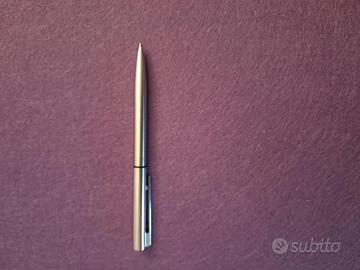Penna a sfera Auretta con finitura in acciaio lucido. Un accessorio elegante e funzionale. Con refil nuovo Aurora con inchiostro blu. Senza confezione originale. Lunghezza 13,5 cm.