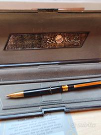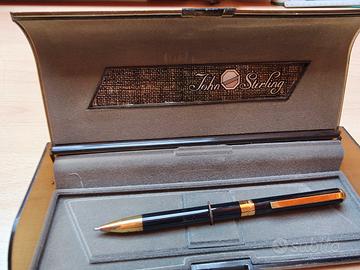In vendita splendida John Sterling by Colibrì, penna a sfera vintage dal design classico ed elegante, ideale per collezionisti e amanti degli strumenti di scrittura raffinati. Realizzata con corpo laccato nero lucido e finiture dorate, questa penna unisce stile retrò e qualità costruttiva. Perfetta come regalo elegante per uomo o donna, per professionisti, laurea, anniversario o collezione privata. Caratteristiche: Marca: John Sterling by Colibrì Modello: Penna a sfera vintage Colore: Nero laccato con dettagli oro Meccanismo: A rotazione Refill: Sostituibile Condizioni: Ottime Perché acquistarla: ✔ Penna elegante e professionale ✔ Ideale da collezione ✔ Perfetta come idea regalo raffinata ✔ Stile classico intramontabile