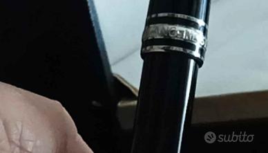 Cappuccio in resina nera con emblema bianco intarsiato in 3 anelli finitura platino con goffratura del Marchio e la clip con numero di serie in foto IW1666856 scritta made in Germany interno spillone-gancio, lunghezza 15 cm circa, in doppio scatolo originario , con carica cartuccia inchiostro Montblanc attiva