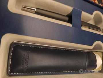 Penna a sfera di pregio marca Waterman, prodotta a Parigi. Collezione Expert Essentials, in un set regalo che include un astuccio in pelle.