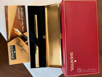 Penna sheaffer stilografica con astuccio in metallo color oro e scatola originale + cartucce originali e stantuffo
