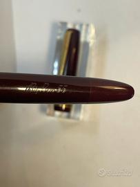 Stilografica Big Ben 55 in celluloide bordeaux e finiture gold, rara produzione Danese degli anni 40. Pennino originale Oro 585 punta OM destro.