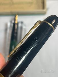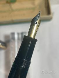 Penna stilo Pelikan 120 green black, pennino laminato M. Sistema a pistone funzionante. Lunghezza cm12,5