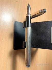 RAFAEL D'ANDRE -Penna stilografica- penna (lunghezza totale 14 cm) con corpo e cappuccio in argento ad alto titolo (punzoni 925 nell’ultima foto). Ricarica a cartuccia. Pennino in iridium argentato. Penna in eccelenti condizioni, appena lucidata.