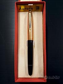 Penna stilografica vintage Aurora 88k con scatola originale e con certificato di colludo di Aurora S.p.a. dove si può vedere il numero di matricola. Cappucci, fermagli e rivestiture sono placcati in lega d’oro 18 Kt.