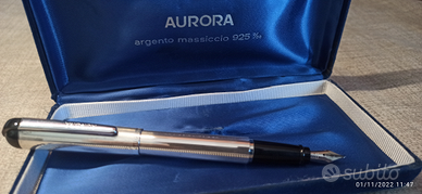 Usata Come nuova penna stilografica aurora idea argento 925 pennino M FUNZIONANTE Con scatola originale